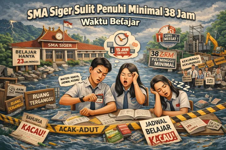 SAIBETIK- SMA Siger Bandar Lampung diperkirakan tidak mampu memenuhi ketentuan minimal 38 jam belajar per minggu, meski telah menambah jam pelajaran pada hari Senin hingga Sabtu. Keterbatasan fasilitas dan penggunaan gedung bersama menjadi hambatan utama.
