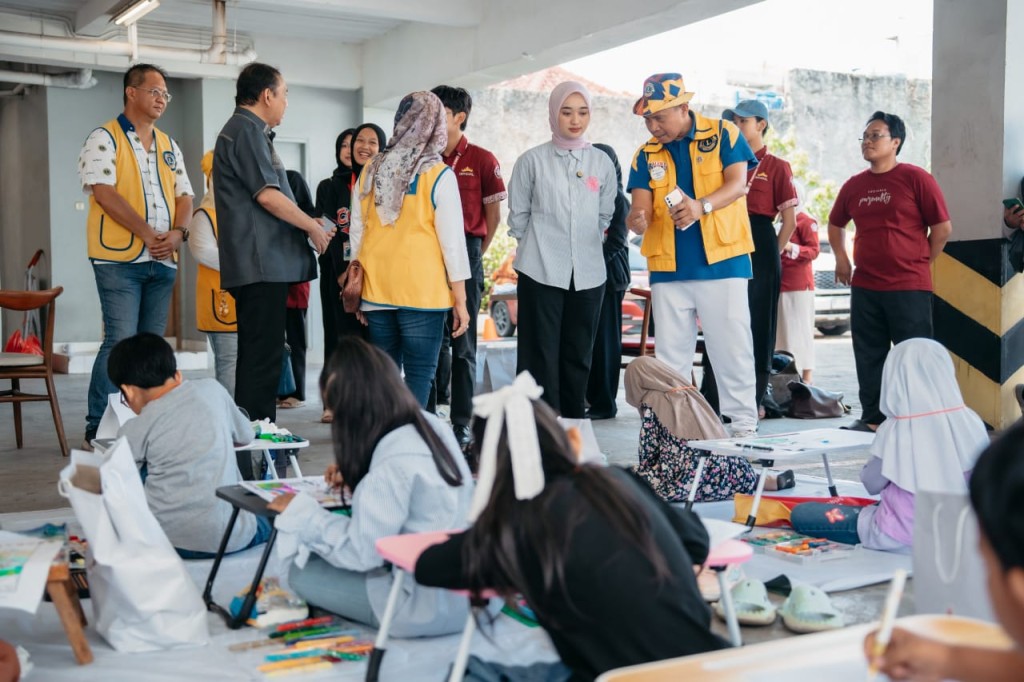 Wakil Gubernur Jihan terlihat berkeliling area kegiatan, berbincang dengan para peserta, serta mengamati berbagai aktivitas kreatif. Ia memuji hasil karya seni anak-anak, sekaligus memberikan motivasi agar mereka terus berani mengekspresikan diri.
