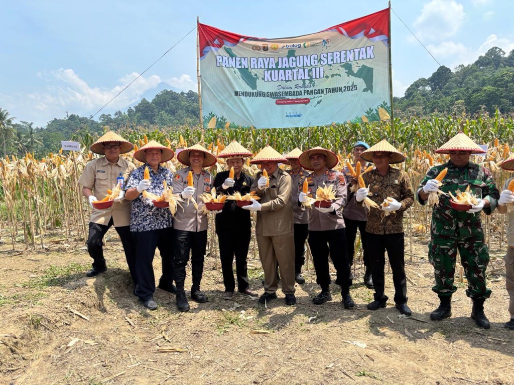 SAIBETIK— Polres Tanggamus kembali menunjukkan komitmennya dalam mendukung ketahanan pangan nasional dengan menggelar Panen Jagung Kuartal III Tahun 2025 di Pekon Sukabanjar, Kecamatan Kota Agung Timur, Sabtu (27/9/2025). Acara ini dipimpin langsung oleh Kapolres Tanggamus AKBP Rahmad Sujatmiko, S.I.K., M.H., dan dihadiri oleh Bupati Tanggamus H. Drs. Moh. Saleh Asnawi, MA., M.H., beserta jajaran Forkopimda, menunjukkan sinergi yang kuat antara aparat kepolisian, pemerintah daerah, dan masyarakat.
