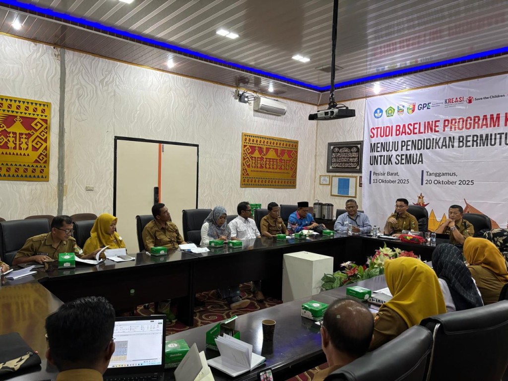 SAIBETIK– Kabupaten Tanggamus menjadi fokus penguatan kualitas pendidikan melalui Program KREASI (Knowledge, Research, and Education Advancement for Student Improvement) yang digagas oleh Save the Children. Kegiatan bertajuk Studi Baseline Program KREASI resmi dibuka oleh Asisten Perekonomian dan Pembangunan Kabupaten Tanggamus, Hendra Wijaya, di Ruang Rapat Bapperida, Senin (20/10/2025).