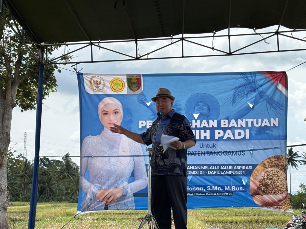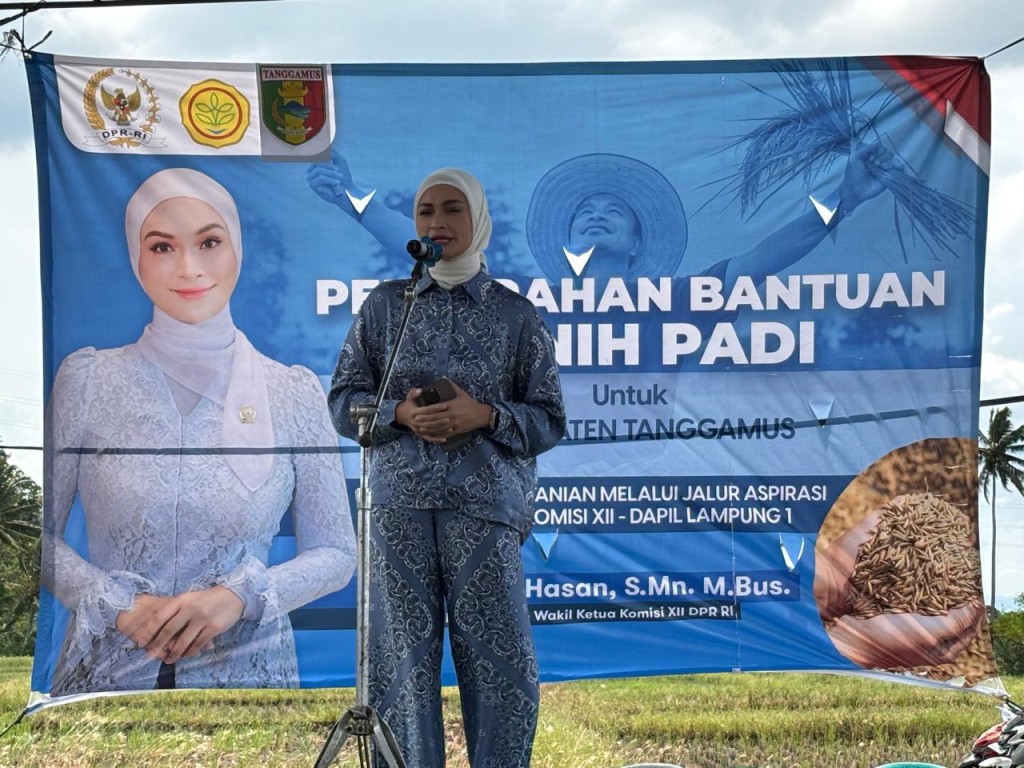 SAIBETIK– Langkah nyata untuk memperkuat ketahanan pangan kembali diambil oleh pemerintah pusat melalui Wakil Ketua Komisi XII DPR RI Dapil Lampung I, Putri Zulkifli Hasan, yang menyerahkan bantuan benih padi unggul sebanyak 198.975 kilogram kepada para petani di Kabupaten Tanggamus.