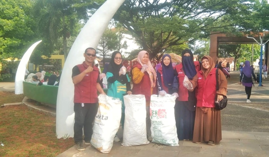 Para relawan dengan rompi khas berwarna merah terlihat memegang karung berwarna putih dan memungut sampah-sampah yang berserakan. Mereka melakukan aksi bersih-bersih di seputaran Islamic Center Kotabumi, yang kini telah menjadi salah satu tempat wisata dan olahraga bagi warga sekitar, pada Minggu (12/01/2025).